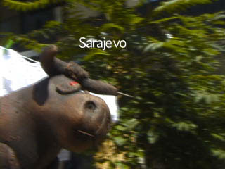 He wanted to make a movie about Sarajevo and he had only a title. It was a word game. It has been called "Sara is an ox", which translates as SARA JE VO in Bosnian. He has never told me about the idea. He couldn't find an ox and that was a problem. He has never made that movie, but he brought me an ox from Poland later. I still have it. |
