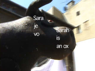 He wanted to make a movie about Sarajevo and he had only a title. It was a word game. It has been called "Sara is an ox", which translates as SARA JE VO in Bosnian. He has never told me about the idea. He couldn't find an ox and that was a problem. He has never made that movie, but he brought me an ox from Poland later. I still have it. |